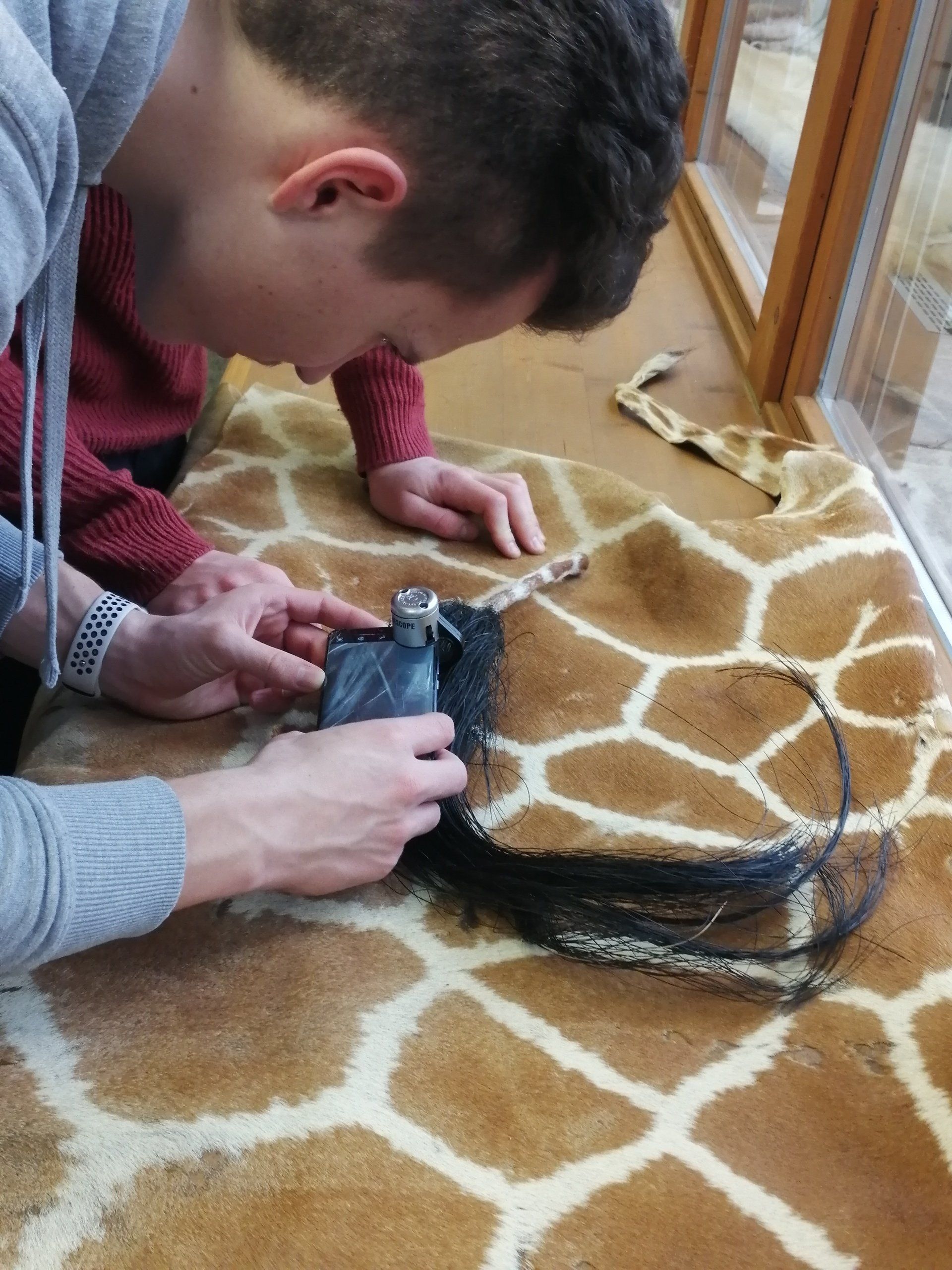 Am 06. März ist die Klasse A11 der Fachoberschule Fränkische Schweiz (Ausbildungsrichtung Agrarwirtschaft, Bio- und Umwelttechnologie) mit ihrer Biologie Lehrerin nach Nürnberg in den Tiergarten gefahren, um dort an einem Artenkennerkurs über Säugetiere teilzunehmen."Wir wurden sehr herzlich im Bionikum, von Herrn Dienemann, dem Zoopädagogen, begrüßt und gefragt, was wir schon über Säugetiere wüssten und was deren typische Merkmale seien. Wir haben zum Beispiel den Unterschied zwischen der Atmung von Säugetier und Reptil genauer „unter die Lupe“ genommen." wurde von Schülern der Klasse berichtet. Nach der Besprechung vieler weiterer Merkmale, durften Teilnehmerinnen und Teilnehmer auf Tischen ausgelegte Schädel, Gebisse und Felle genauer betrachten. Es fielen sofort die Felle von Löwe, Tiger, Giraffe, Eisbär und Luchs ins Auge… Die Aufgabe war, durch Fühlen aber auch mit Hilfe eines kleinen Mikroskops, Unterschiede in den Fellstrukturen zu erkennen und diese mit der Art des Tieres und dessen Lebensraum in Verbindung zu bringen. So ist das Winterfell des Luchs beispielsweise weiß bis hellgrau gefärbt, um im Schnee gut getarnt zu sein. Der Luchs hat ein sehr warmes flauschiges Fell, um sich im Winter wärmen zu können, wohingegen ein Tiger oder ein Löwe, eher kurzes Fell haben. Das liegt daran, dass die Tiere vor allem im Sommer häufig sehr großer Hitze ausgesetzt sind und daher ein warmes Fell nur störend wäre.